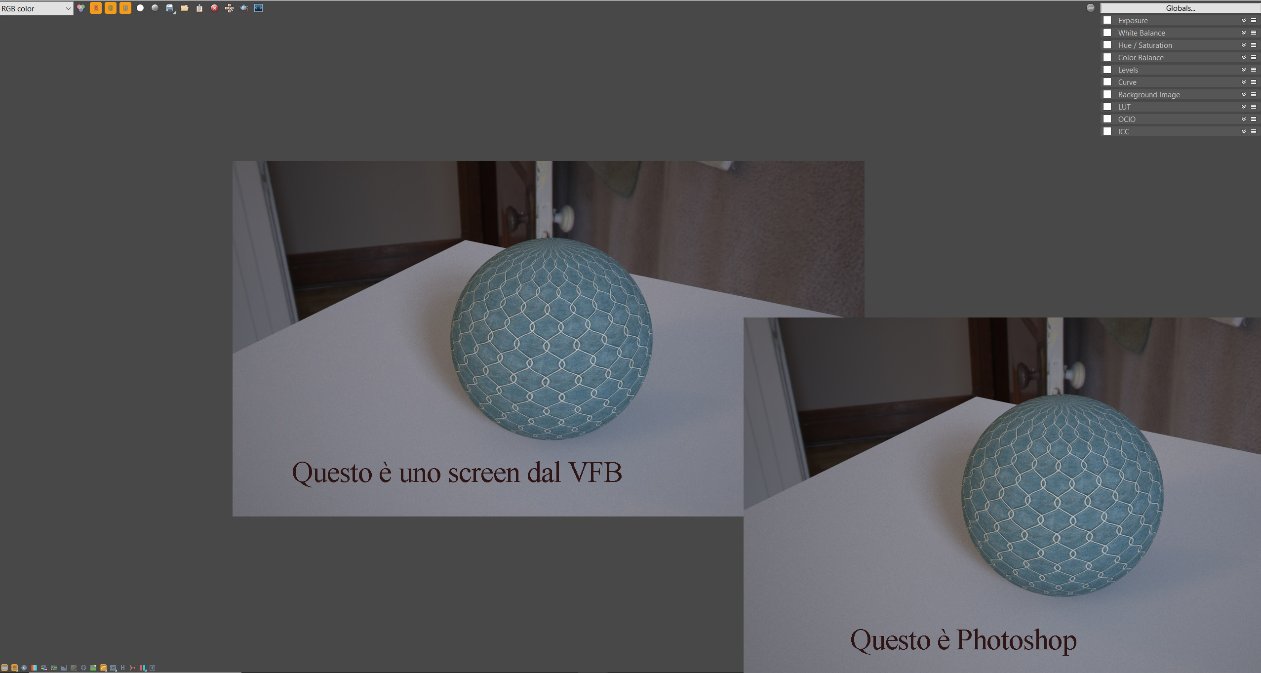 Nel VFB attivo la curva sRGB space e in qualunque modo salvo, che sia tiff, exr, jpg il file è sempre lo stesso che vedo su Photoshop.