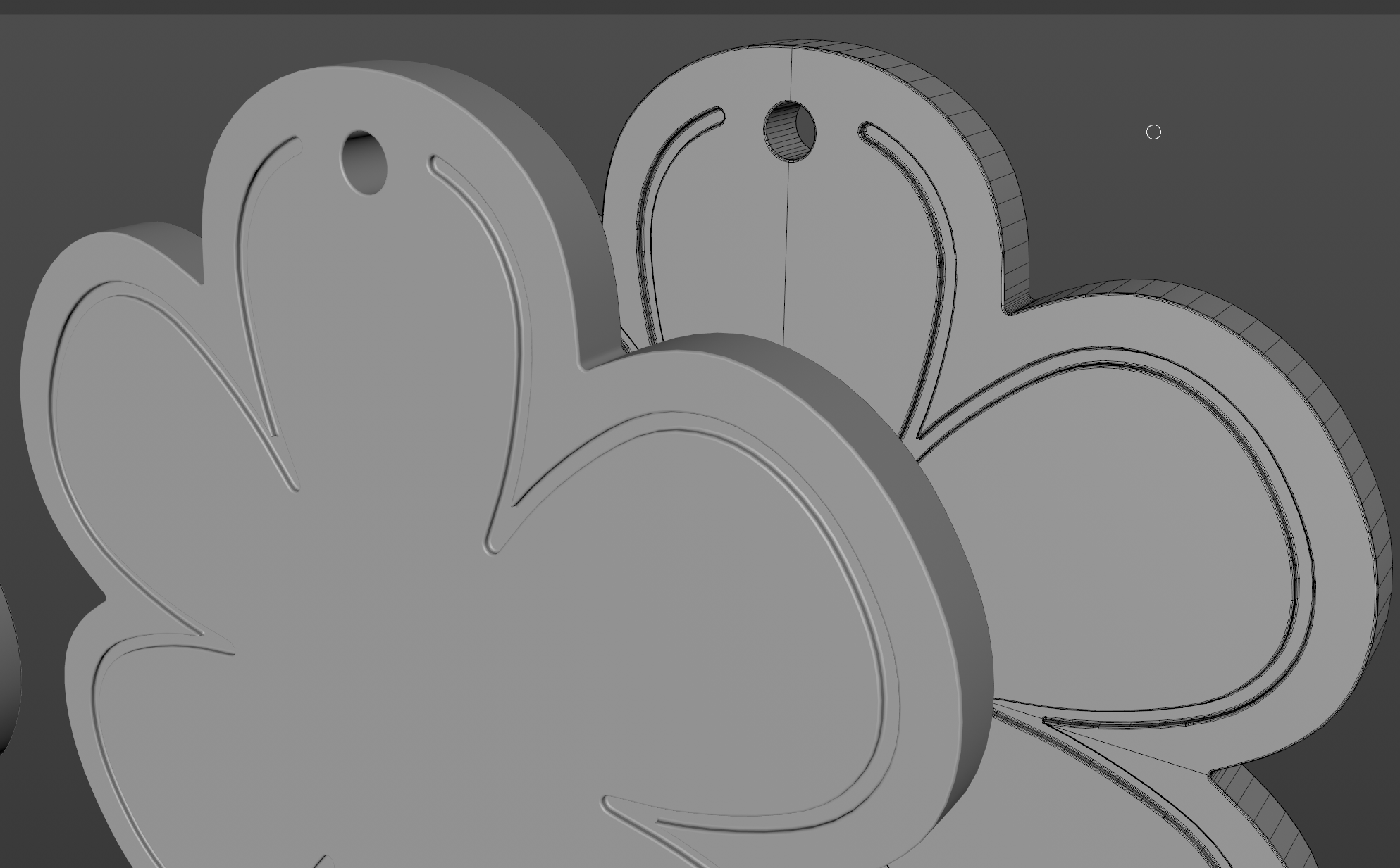 Ho poi duplicato 5 volte il petalo ruotandolo per ottenere il tagliere completo, ho unito il tutto e l'ho estruso. (poi lo inserirò in seguito in una superficie di suddivisione per arrotondare il tutto).