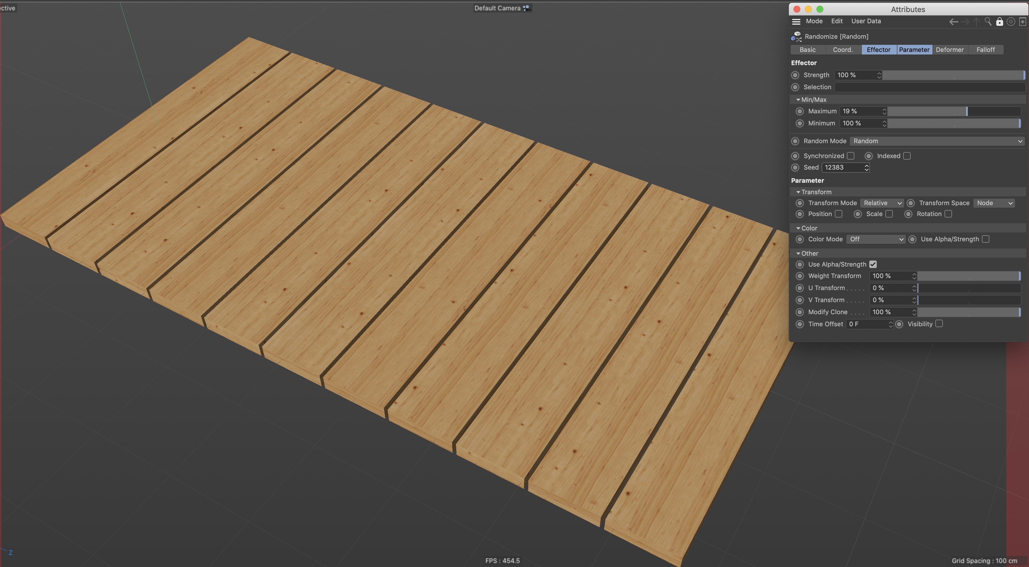 Ciao e grazie per la risposta. Ho testato questo tuo metodo però il risultato è che mi applica in maniera randomica non la texture ma semplicemente come vengono distribuite le due copie che ho creato. Di conseguenza ho due doghe differenti che vengono ripeture in maniera casuale, vorrei qualcosa che mi permettesse di randomizzare tutta la texture :(