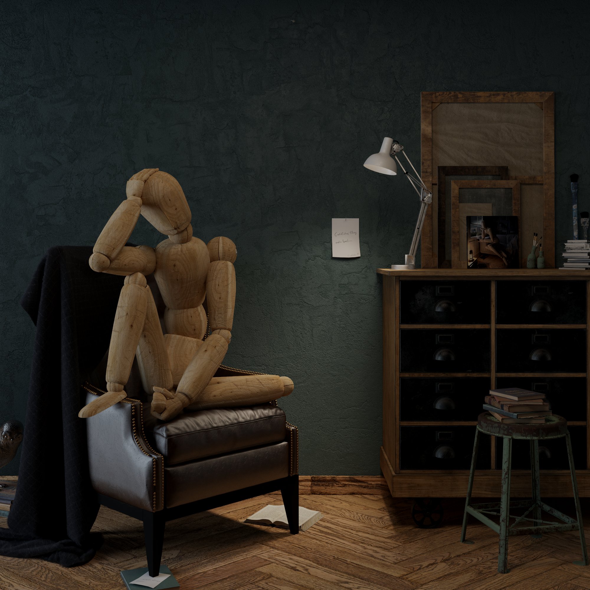 - Guarda le due immagini che ho allegato. E' praticamente la stessa identica scena ma con le due variabili in discussione. Come puoi vedere il muro ha perso di profondità, la poltrona ha perso quelle sue variabili che la rendevano più interessante, anche il pavimento si è inspiegabilmente illuminato anche in punti in cui avevo scelto di non percepire la luce, per non parlare dello sgabello a destra che ha perso anch'esso di profondità. Tutta la scena in generale ha perso interesse ma questo l'avrai già notato data la tua esperienza.