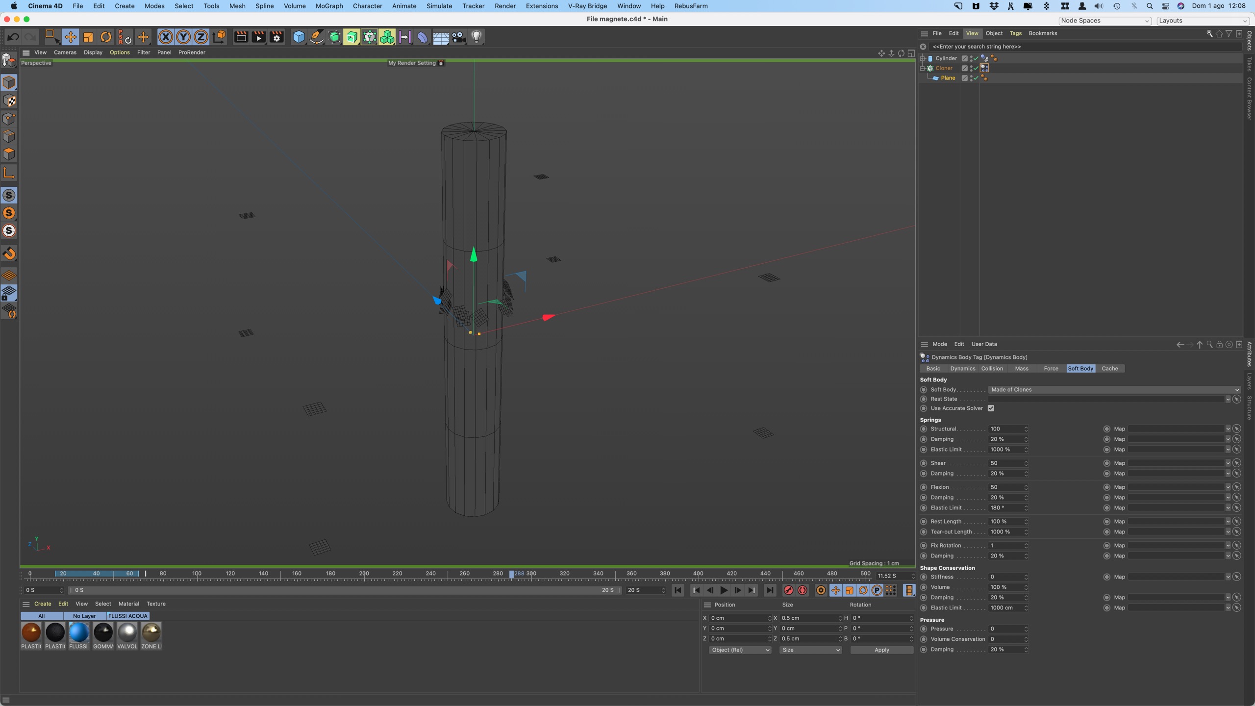 ...e come voler ottenere la fluido dinamica, cinema è proprio tozzo sotto questi aspetti e (devo dirlo) si fa prima a imparare blender che a provare a fare sta roba con C4D ...