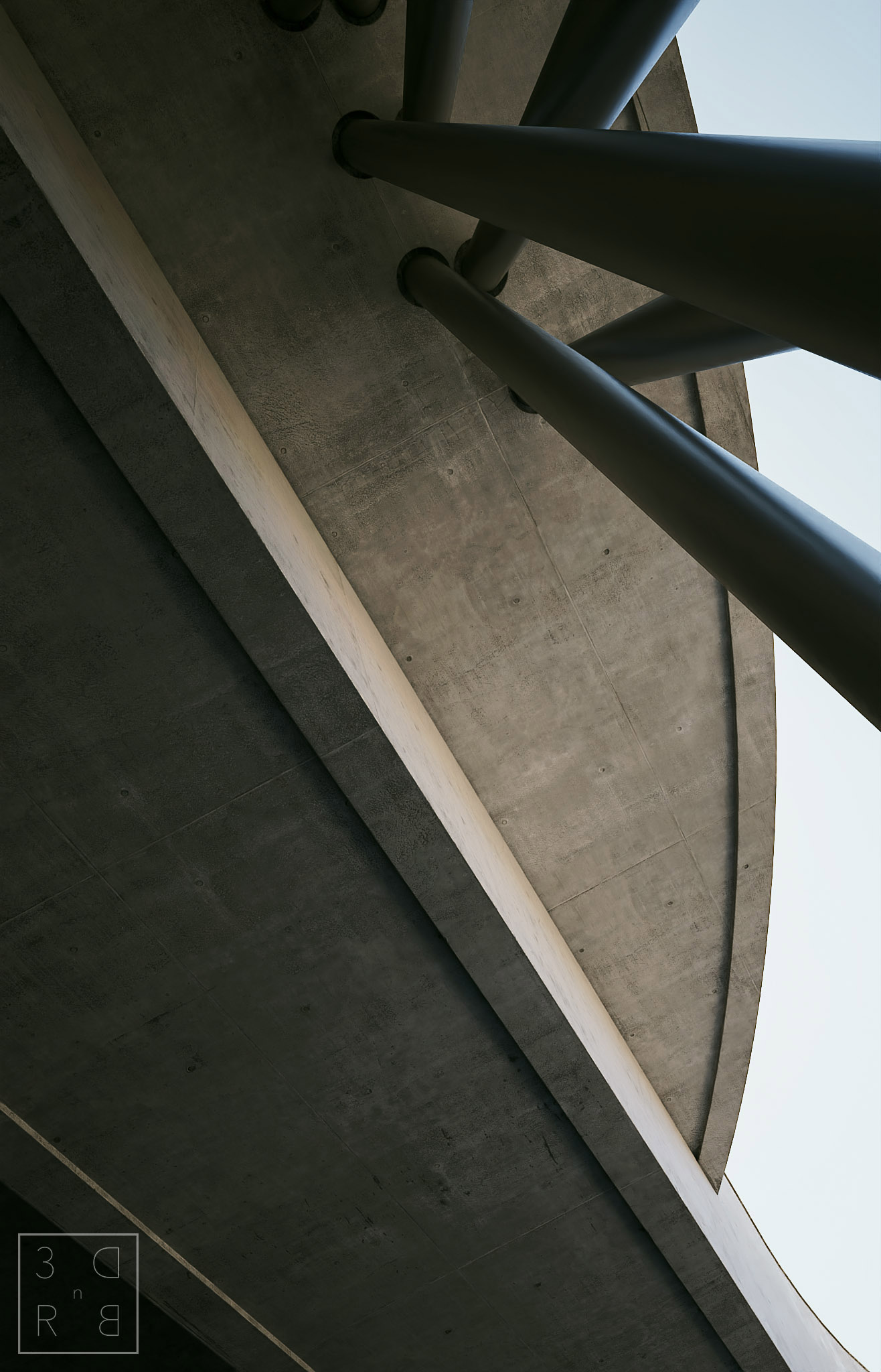 Un paio di dettagli sul cemento. Per la seconda inquadratura mi sono ispirato ad una foto trovata online, devo dire che è sorprendente quanto il cielo fisico si avvicina alla realtà come resa:
