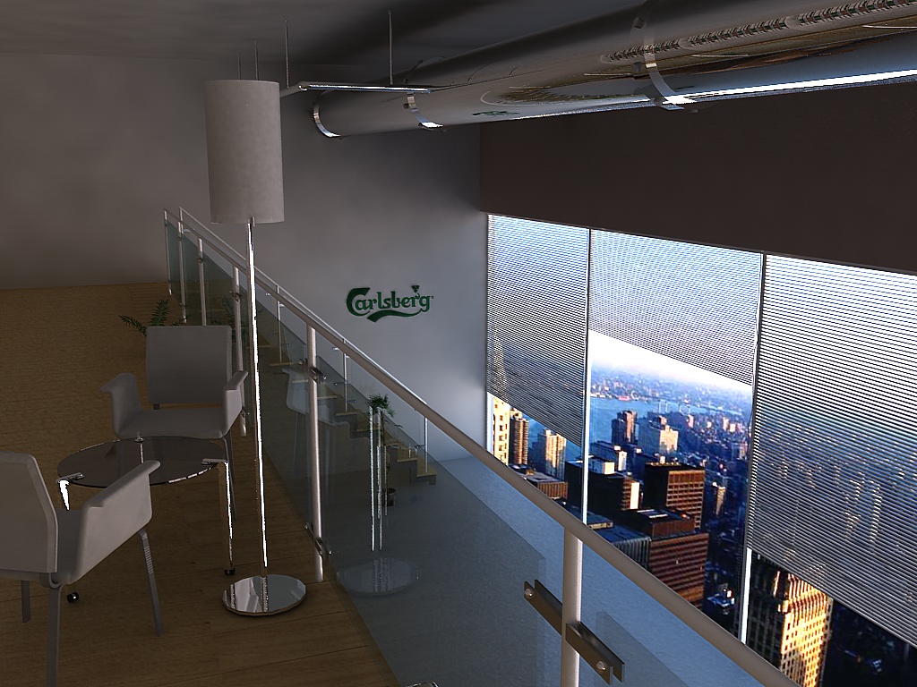 io la butto li ma ti do un consiglio guardandolo piu con un occhio fotografico ... negli ambienti ampli tipo questo andrebbero inserite delle luci artificiali, faretti lampade ecc. che rimangono accese anche di giorno, a meno che non desideri raffigurare un ambiente disabitato o abbandonato.