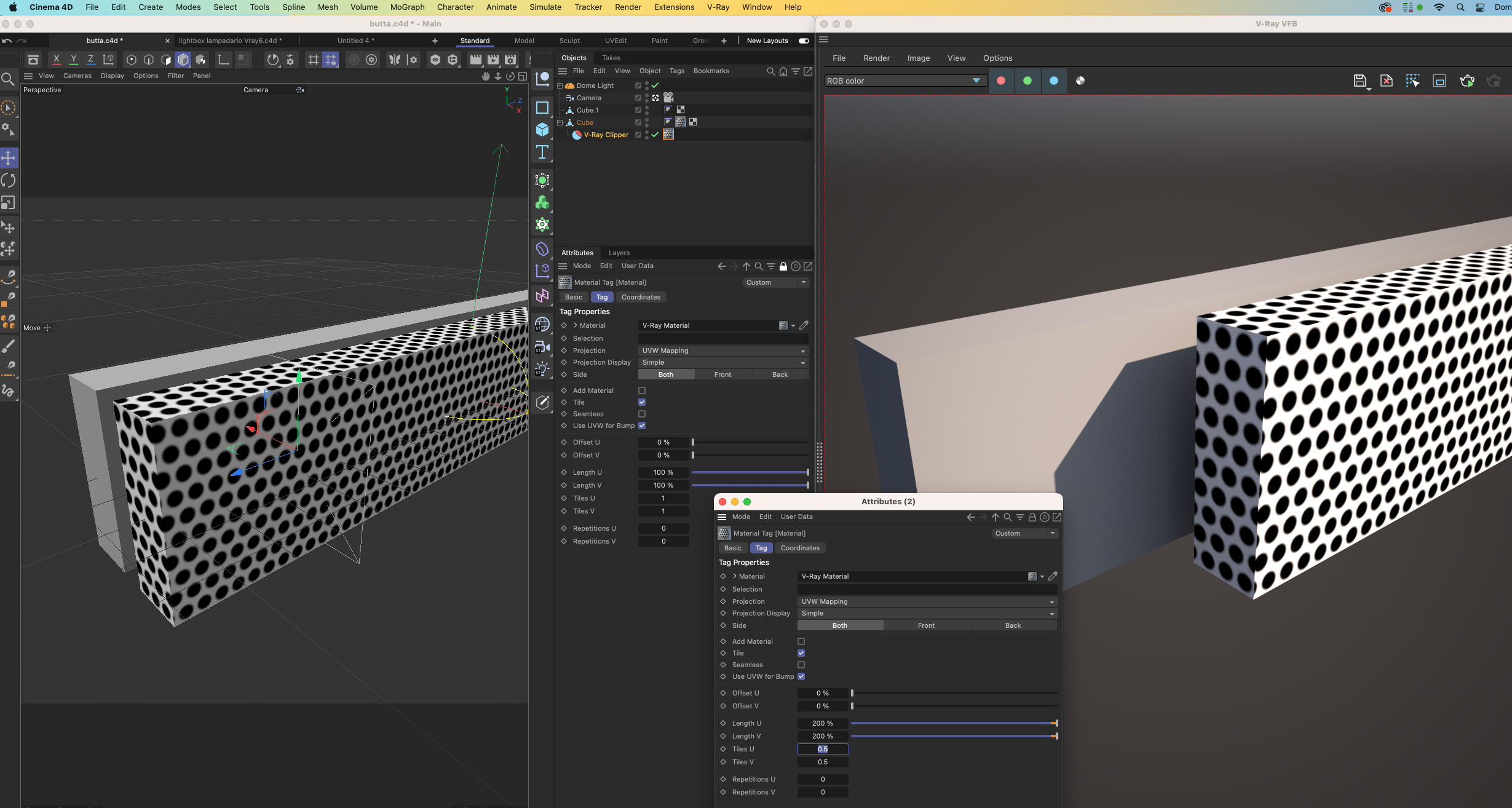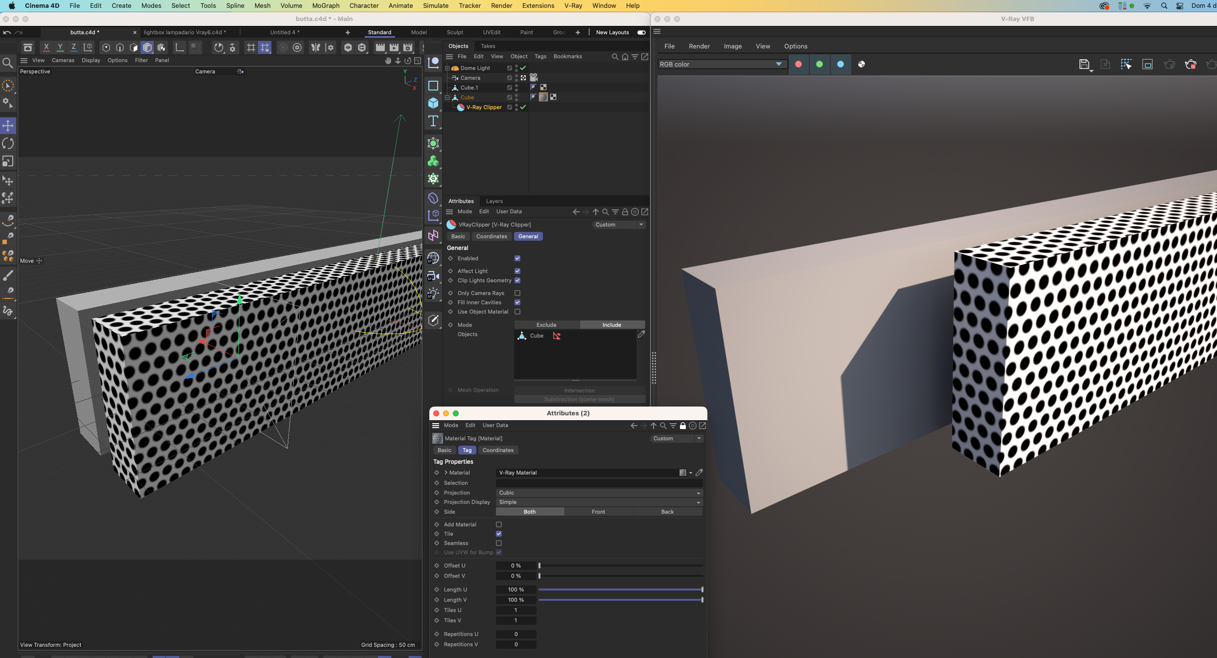 Per il clipper nessun problema. Semplicemente non può lavorare nel modo in cui vuoi se imposti la proiezione su UV, è un tuo errore concettuale e non dipende da Vray o altri motori.