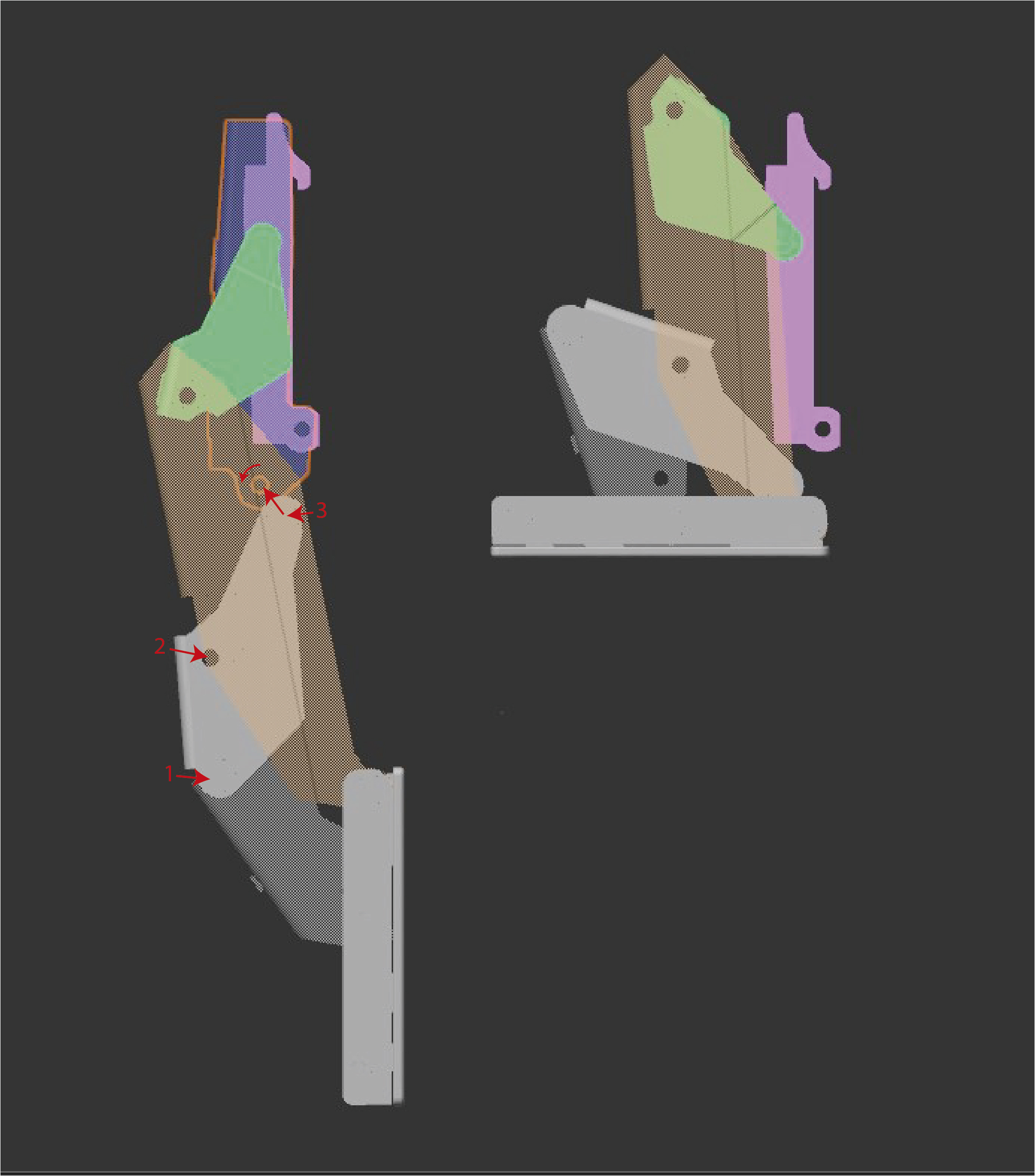 a questo punto però dovresti specificare con precisione i vari vincoli, nello specifico l'Object_1 dello stato chiuso (particolare in foto) è vincolato sui 3 punti, all'1 e 2 o all'1 e il 3 ?