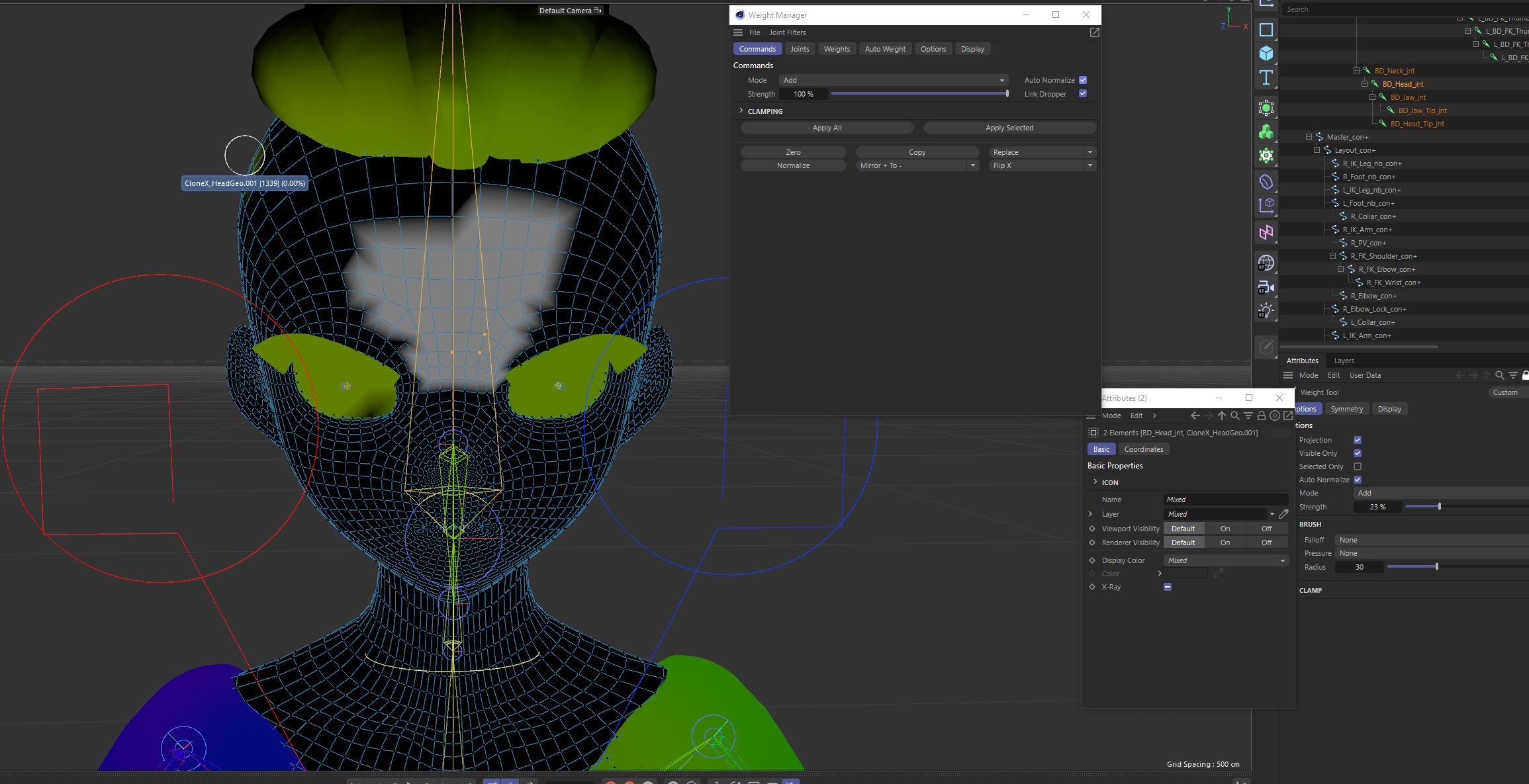 Non so cosa stia facendo di sbagliato, quando provo a pesare i vertici tramite selezione invece di acquisire il colore del joint selezionato diventa tutto grigio.