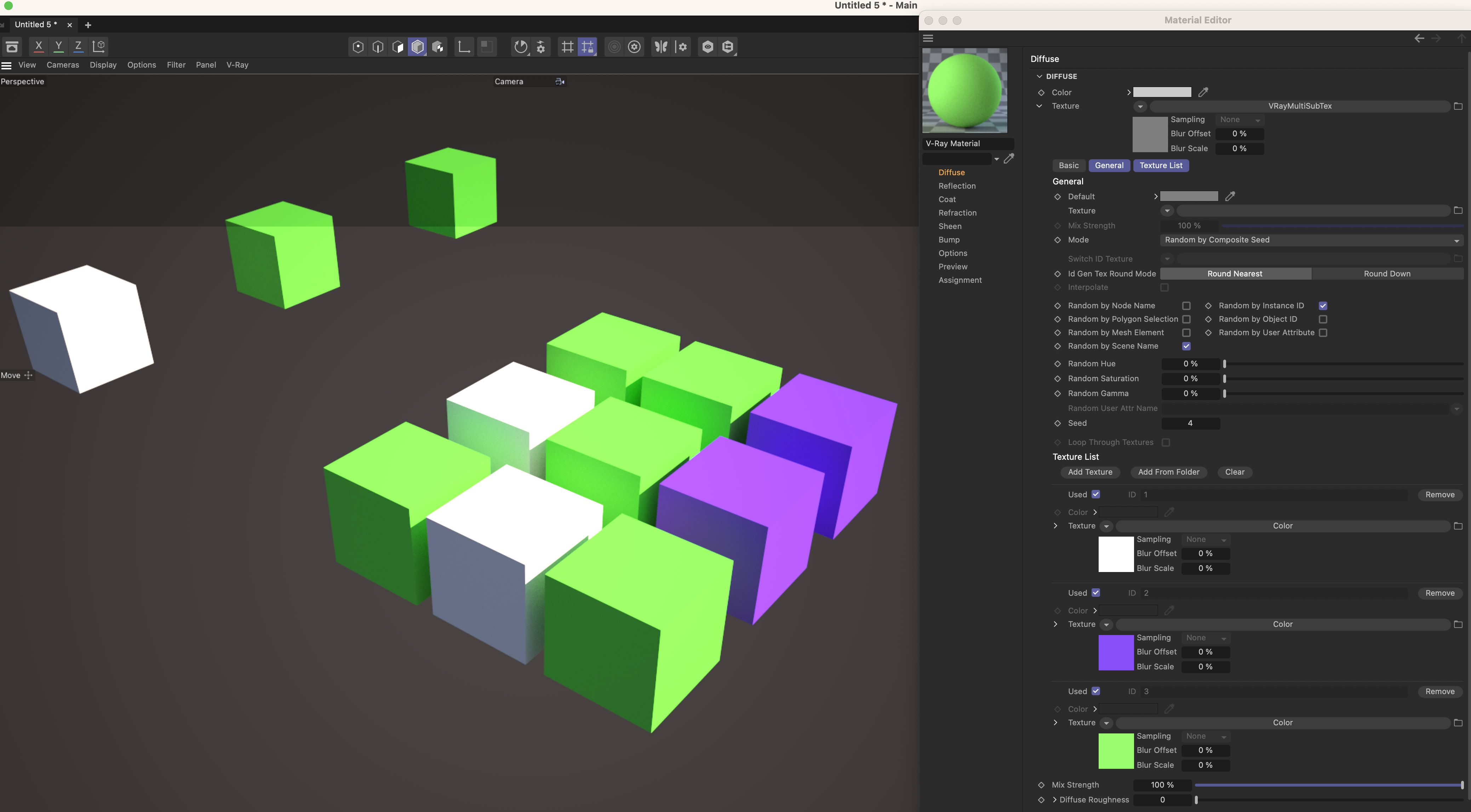 Giusto per completezza, il Multi shader è creato dal materiale di V-Ray stesso.