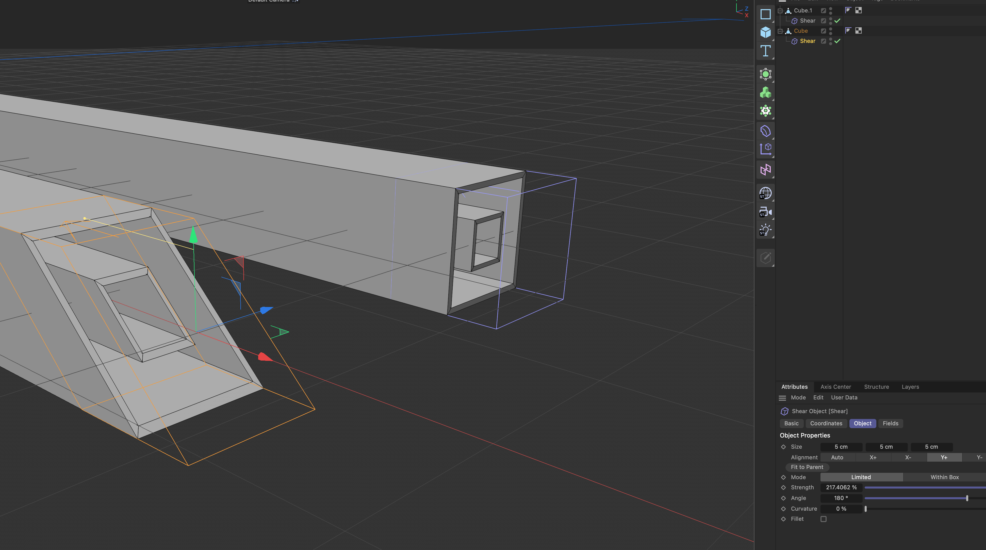 raga come faccio a spostare in obliquo le tutte le facce insieme di sti oggetti?