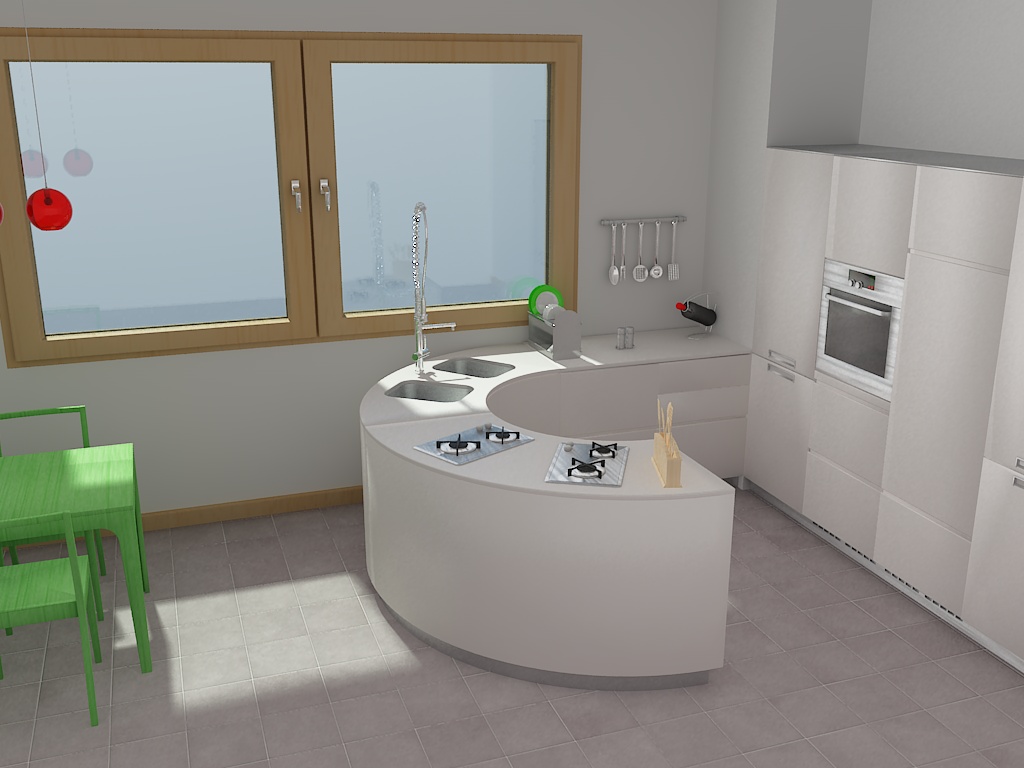 Avevo iniziato a studiarmi le luci in vray in un ambiente chiuso con una sola apertura abbastanza grande (per questo la finestra sembra enorme :P) poi ho pensato di arredarlo a mo' di cucina.