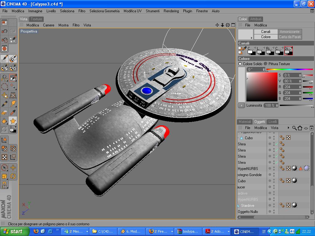 Dopo mesi di lavoro sono riuscito a creare una mesh abbastanza carina di un'astronave. Ora, durante la texturizzazione, ho bisogno di applicare dei disegni come sullo scafo, e penso che ci voglia il bodypaint. Ho dato un'occhiata al tutorial presente su questo sito, ma dubito che mi sia d'aiuto per una mesh così grande. Qualcuno sa darmi qualche indicazione?