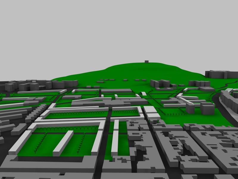 Io ho fatto un lavoretto simile per l'università, se lo devi lascire così giusto per avere un'idea sulle volumetrie gli dare un'effetto modellino, io ho messo anche strade e spazi verdi creando una base, con materiale nero, su cui ho appoggiato gli edifici e dei piani per il verde, poi ho usato il radiosity applicando al cielo un materiale con sola luminosità grigia, l'effeto è abbastanza realistico.