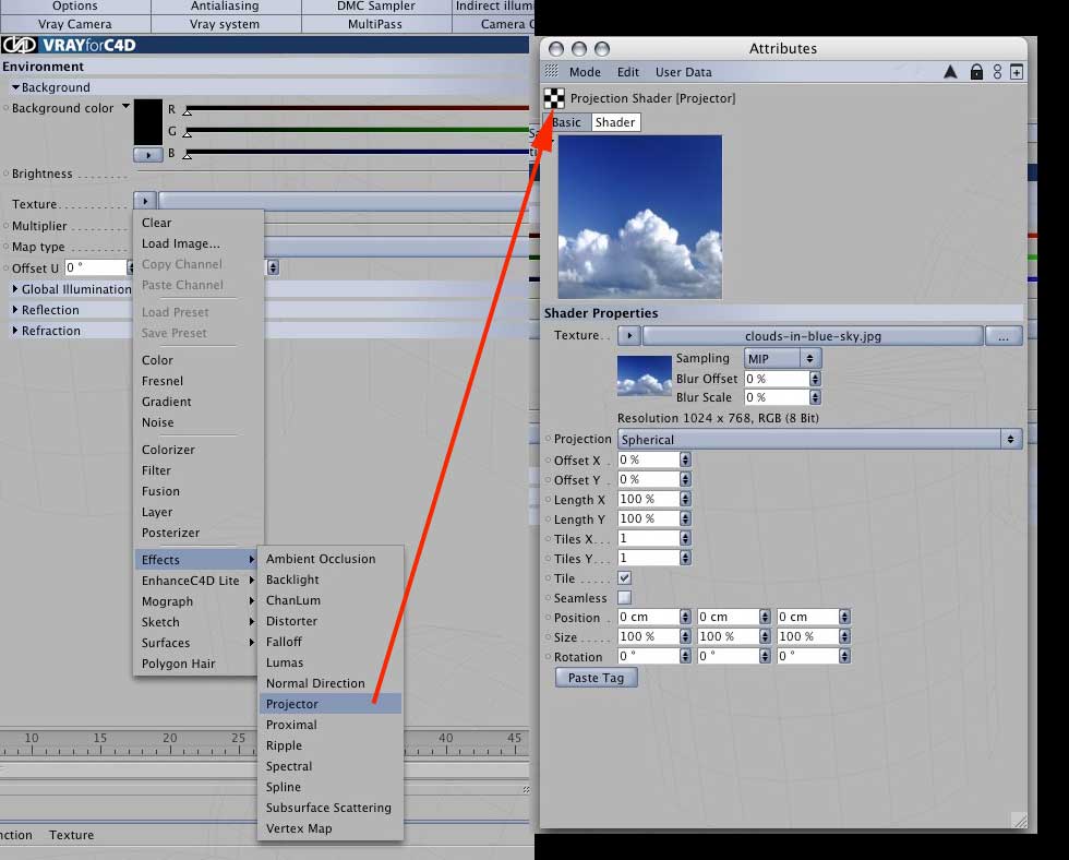 in questo caso, quali parametri bisogna assegnare alla texture cielo? Nell'esempio allegato ho impostato il tipo di proiezione "frontale" giocando poi su "ripeti X" e "ripeti Y"