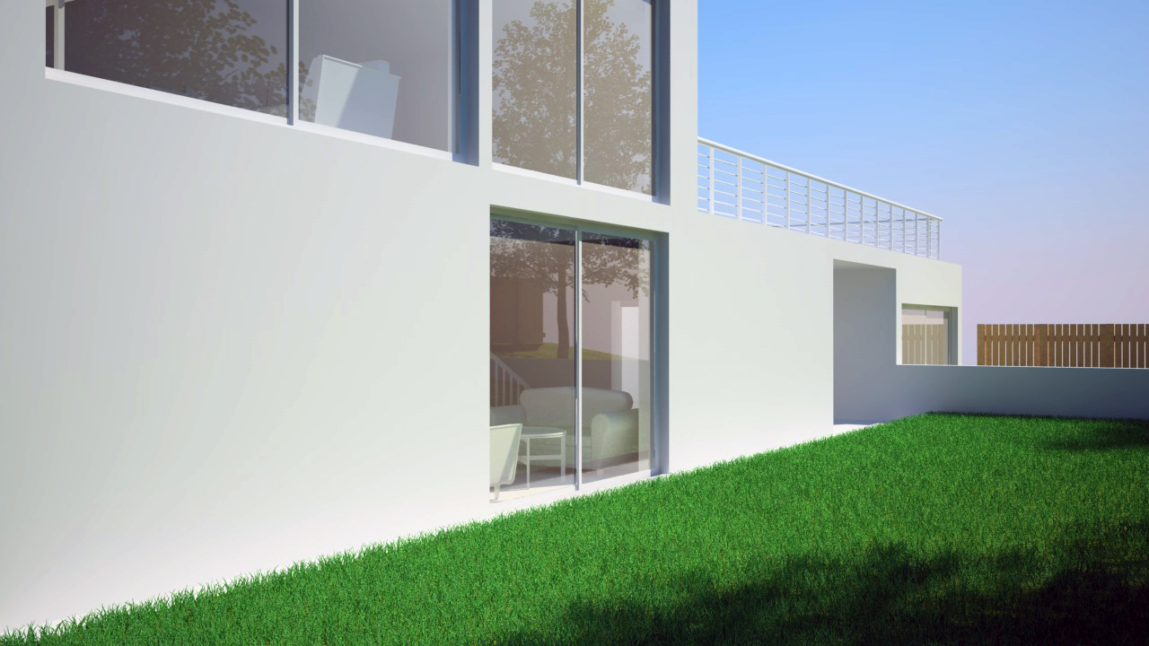 Dunque, per quanto riguarda i parapetti....non avevo ancora modificato il materiale...era chiaro che non li avrei lasciati bianchi; ho diminuito la dimensione della griglia bucherellata frangisole, tuttavia non riesco a modificare il colore del cielo.