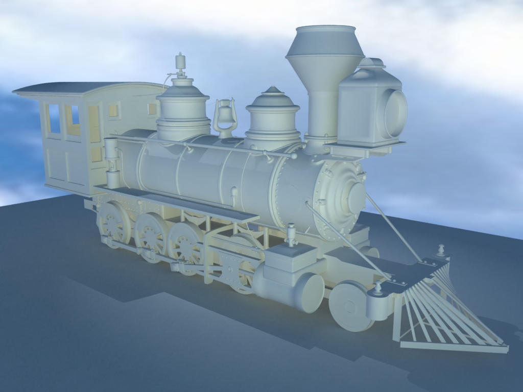 Ho cominciato a texturizzare la locomotiva e mi è venuto in mente di fare 2 immagini: 1 in versione "pulita" come se fosse un modellino e l'altra in versione più...vissuta.