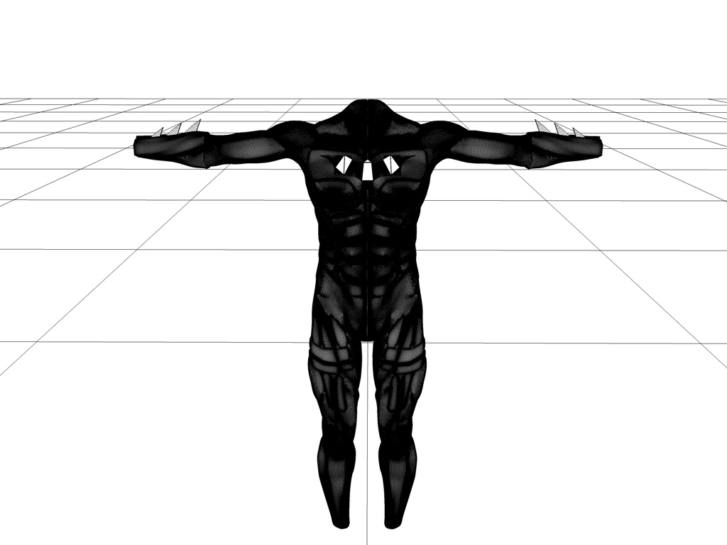 A questo punto sarei curioso di vedere la mesh del corpo "vergine" come l´hai aperta in C4D e la stessa mesh dopo le strusioni (guanti, costume, etc.)