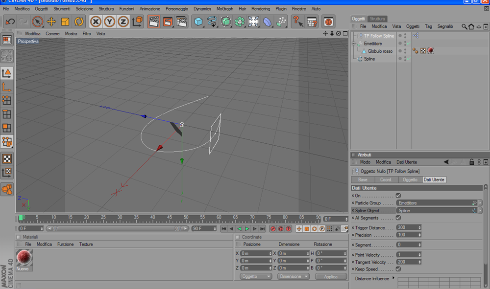 sto provando ad utilizzare l'Emettitore, ma ho un problema: non riesco a far sì che le particelle o le figure generate si allineino ad una spline.