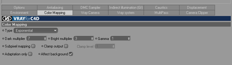 quando lancerai un render di prova e vedrai che alcune parti in ombra sono troppo scure e le parti in luce... bruciate ... allora interverrai sul color mapping ... prova con il linear mult. il mio personale consiglio è di non superare il 1.2 per il dark lo 0.7 per il bright.