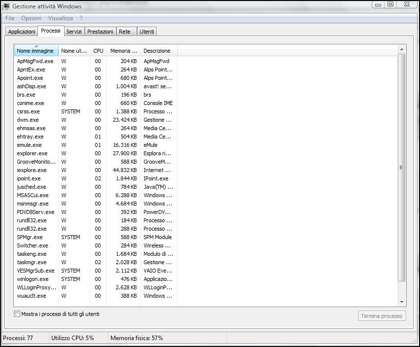 vi posto le schermate relative ai programmi in Avvio con Windows e quelle dei processi attivi totali (tutti gli utenti) che mostrati dalla Gestione Attività