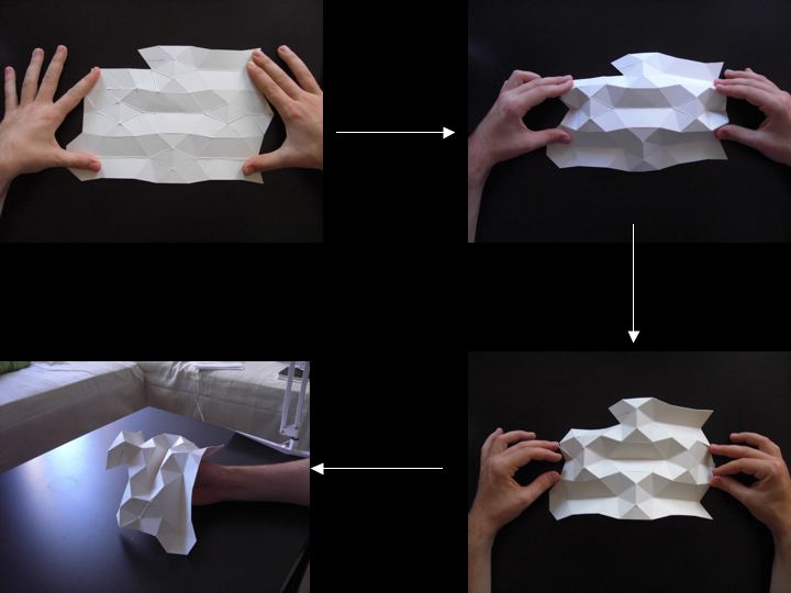 se prendo un cartone, diciamo din a4, intaglio per esempio triangoli, poi prendo il cartone sui lati e lo spingo in mezzo che la forma dei triangoli nasce da se.