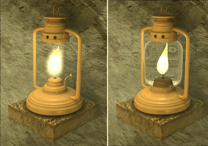 Perchè secondo voi se renderizzo con il vetro "spento" si vede l'alone della fiamma......e se invece poi lo attivo l'alone scompare???
