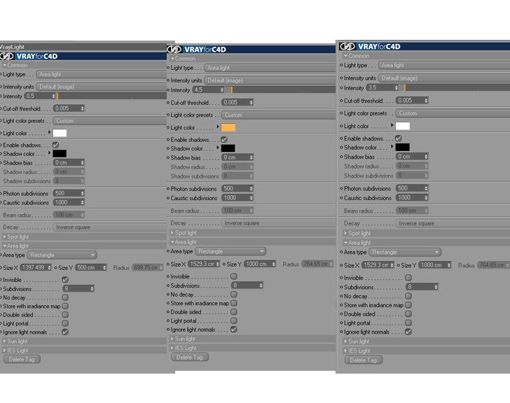 per le luci mettero' la spunta su ''invisible'' nel vray area light tag