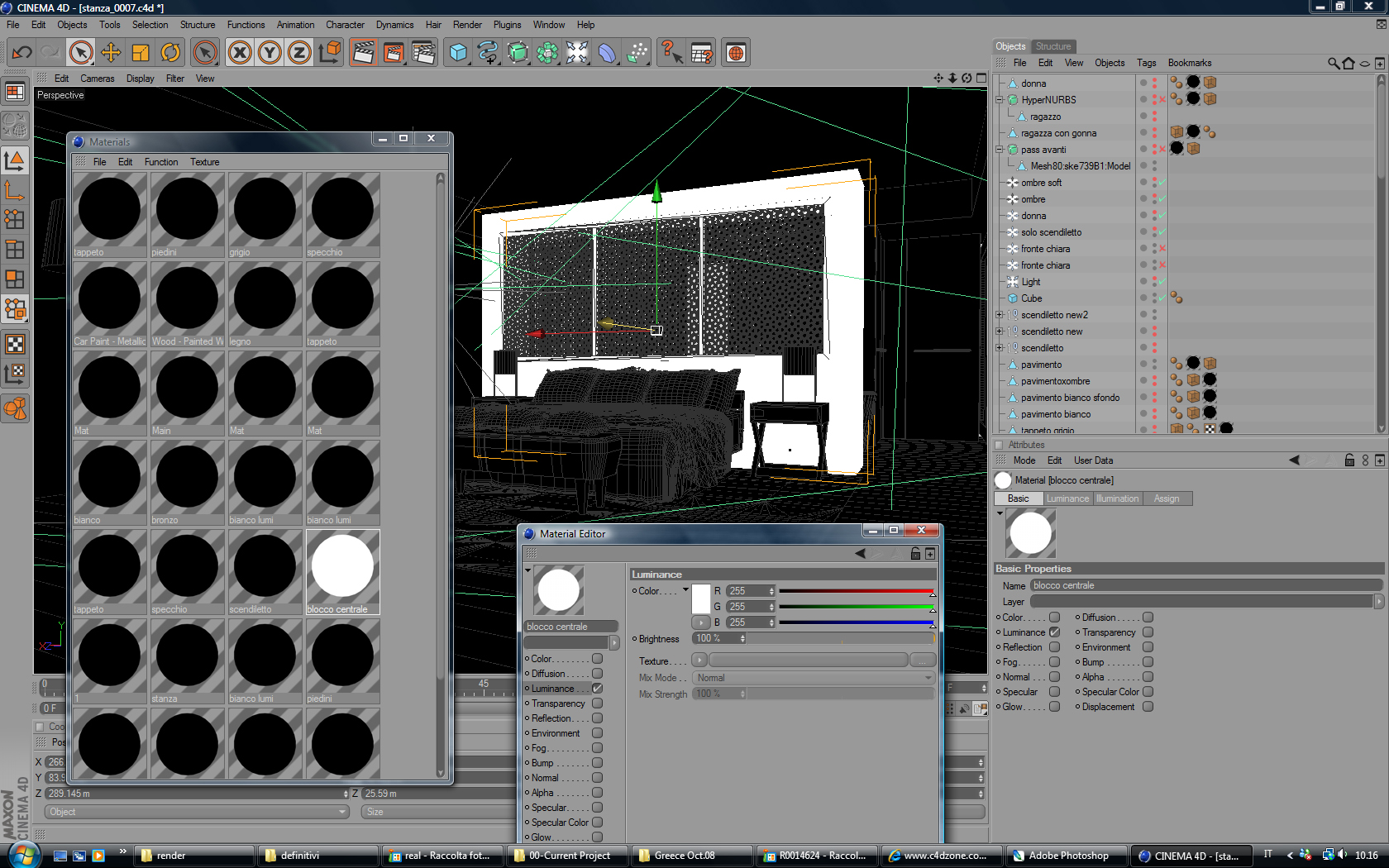 - selezioniamo tutti i materiali, e dal gestore in basso a dx disattiviamo tutto tranne