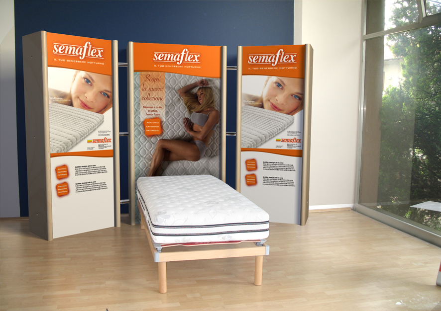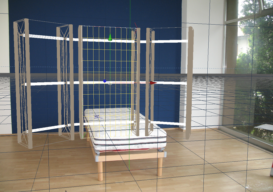 Una volta ottenuto il rendering con il compositing, per far si che il letto nella foto risulti in primo piano rispetto agli espositori modellati in C4D, bisogna operare in Photoshop: