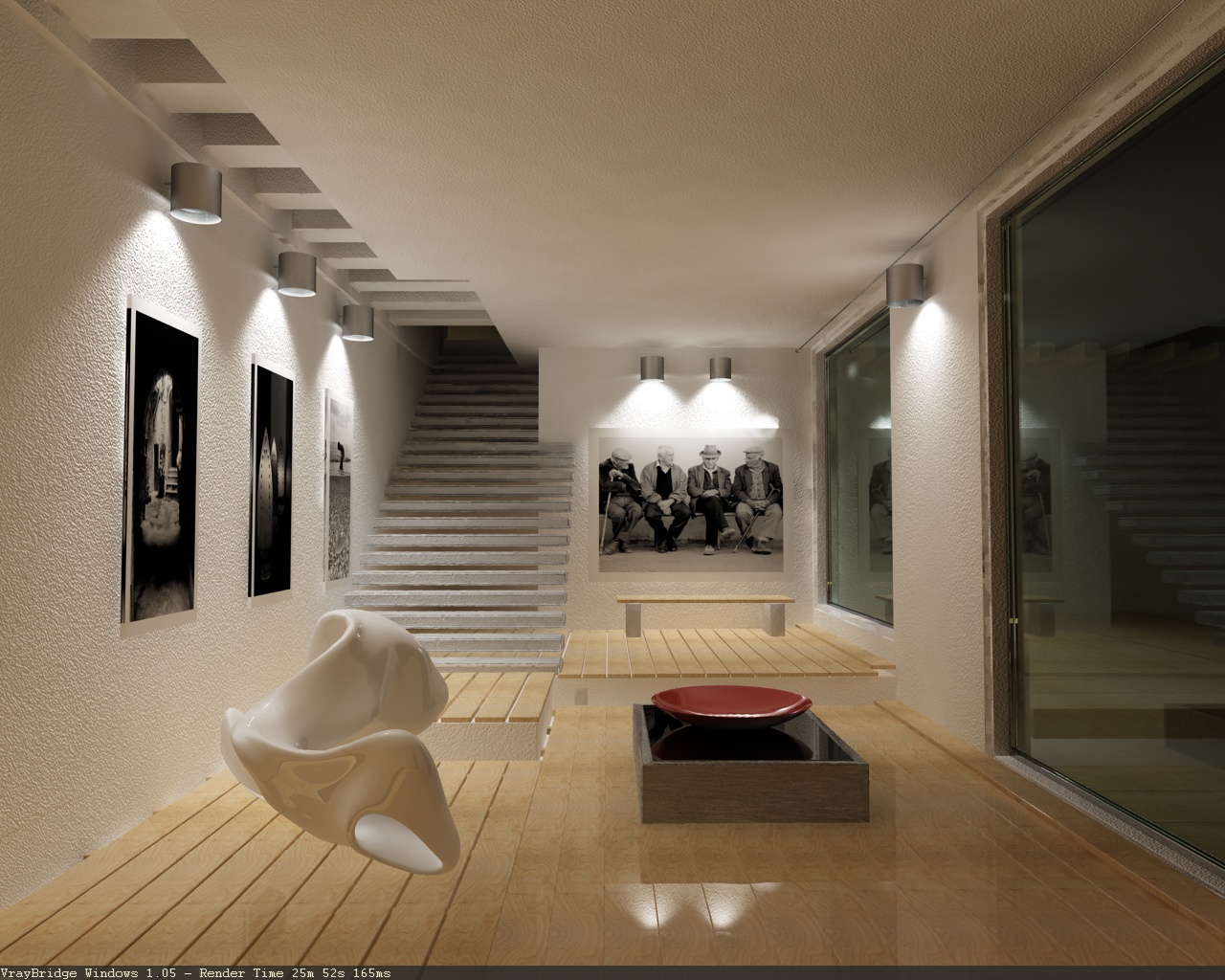 Bello cannalonga....mi piace..., bello anche il lavoro, v-ray non lo uso però quoto graphic per i faretti, e abbasserei un pò anche il bump dei muri, forse è voluto ma mi sembra sempre troppo grezzo.