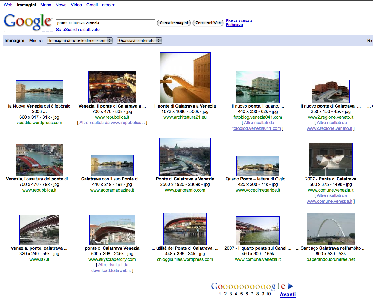 Alfio, se ti servono foto del ponte di Calatrava, basta che vai su Google.... ce ne sono a migliaia.