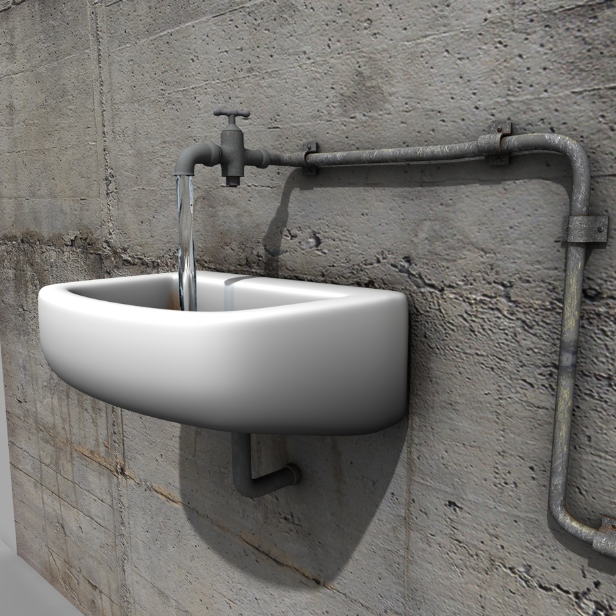 x Max: la parte del rubinetto, esclusa la manovella, è per caso una continuazione del tubo, e magari è tutto una sweepnurbs ? ... non fosse così, prova con un gradiente, o quello che preferisci, per rendere l'umidità, ruggine e schifezze varie che solitamente ci sono tra le giunture di tubi per l'acqua !