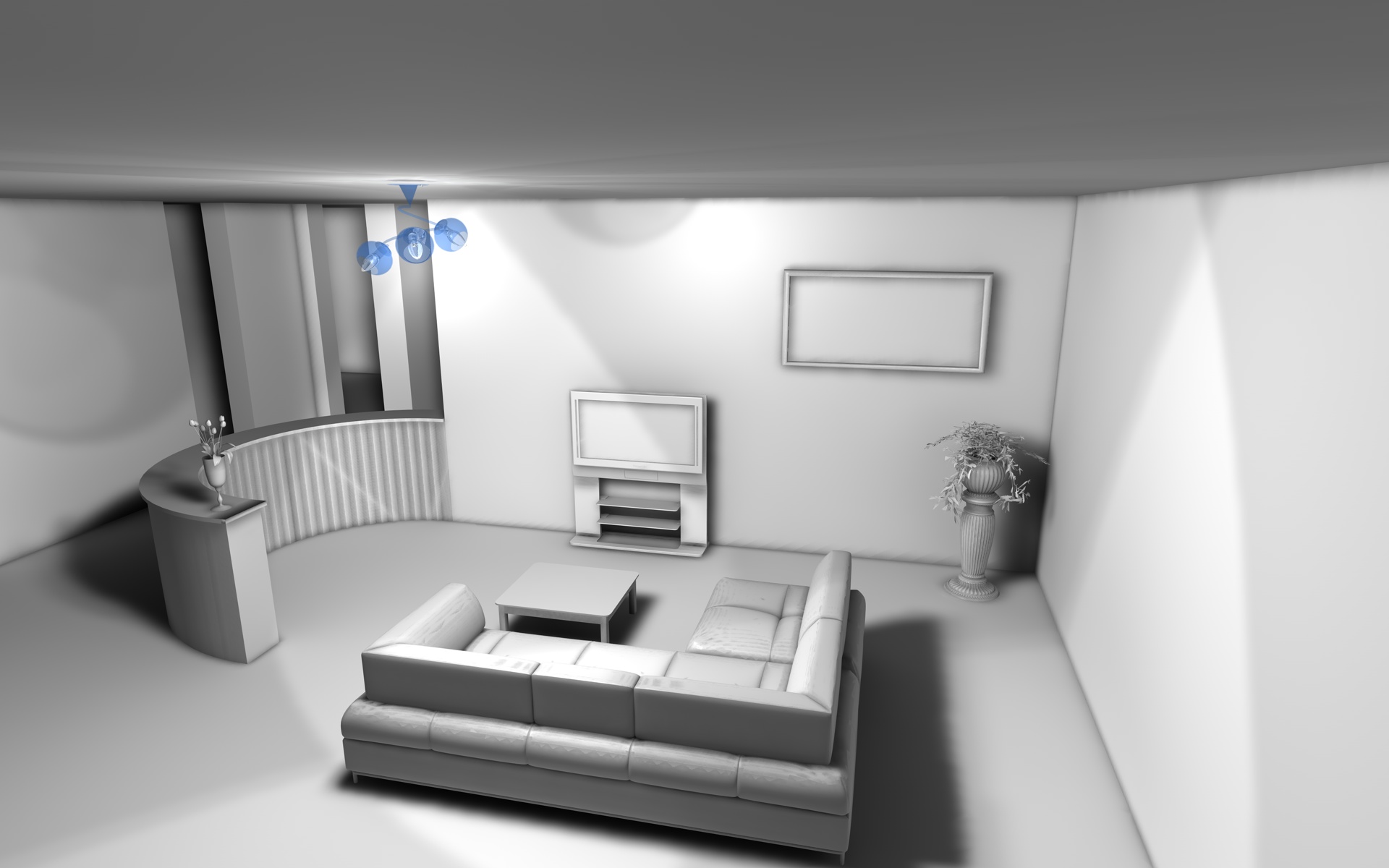 :):) il plug in Masktexture funziona da Dio!!! Grazie mille! Ho seguito il consiglio. Posto la scena in "bianco". Ho inserito un po di arredi e sopratutto due lampadari... che hanno 3 luci spot ciascuno... il risultato è pessimo! e ci sono strani sfarfalli sulla parte bassa del muro (lato TV!). Secondo voi devo orientare meglio gli spot o questo non è proprio il metodo corretto per lavorare bene?