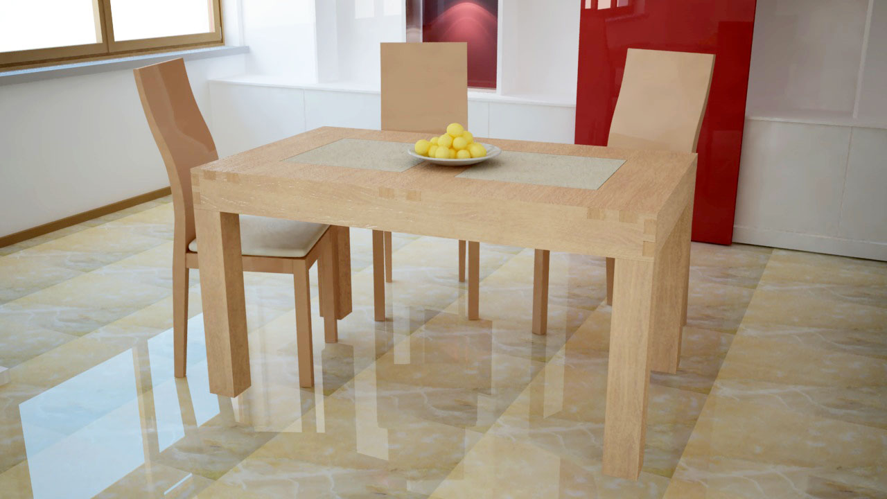 dunque ... se vuoi fare un inquadratura cosi da vicino di un tavolo costruito in legno massello ed a code di rondine.... dovrai rivedere la testura del legno... in modo che non si ripeta, le venature degli incassi delle code invece devono essere nello stesso senso di quelle della facciata ... quelle del legno di punta sono perlopiu a semicerchio