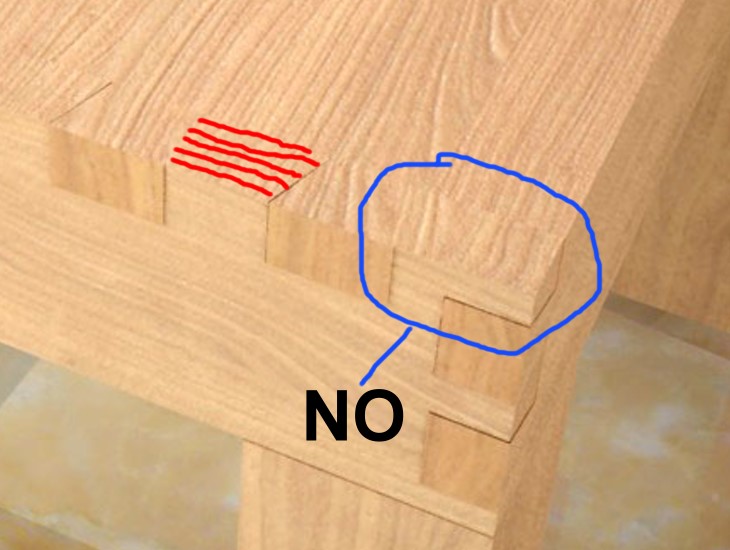 nella prima vedi gli errori, dove ho scritto NO è perche in falegnameria un incastro cosi non si fa perche il legno salta