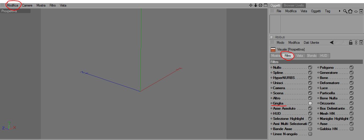Se vuoi disattivare la griglia dalle viste devi andare nel menù Modifica di una delle viste (non quello della barra superiore, vicino a File) e cliccare su configura: si apre una finestra in gestione attributi, vai nella scheda Filtro e deseleziona la voce Griglia.
