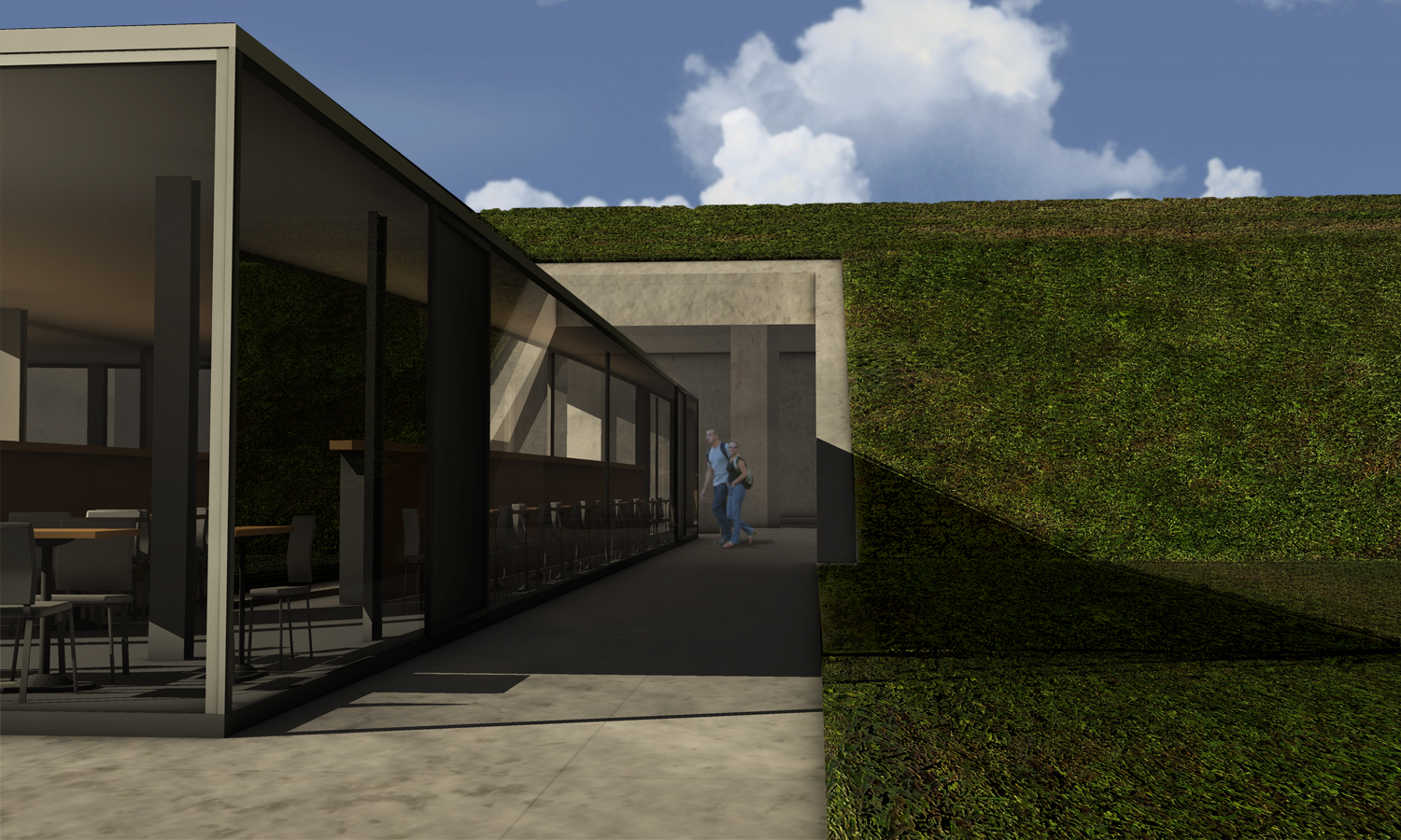Per lo sfondo potresti provare con un cilindro senza tappi o un piano a cui applicare gli edifici, non so, fai delle prove per quello