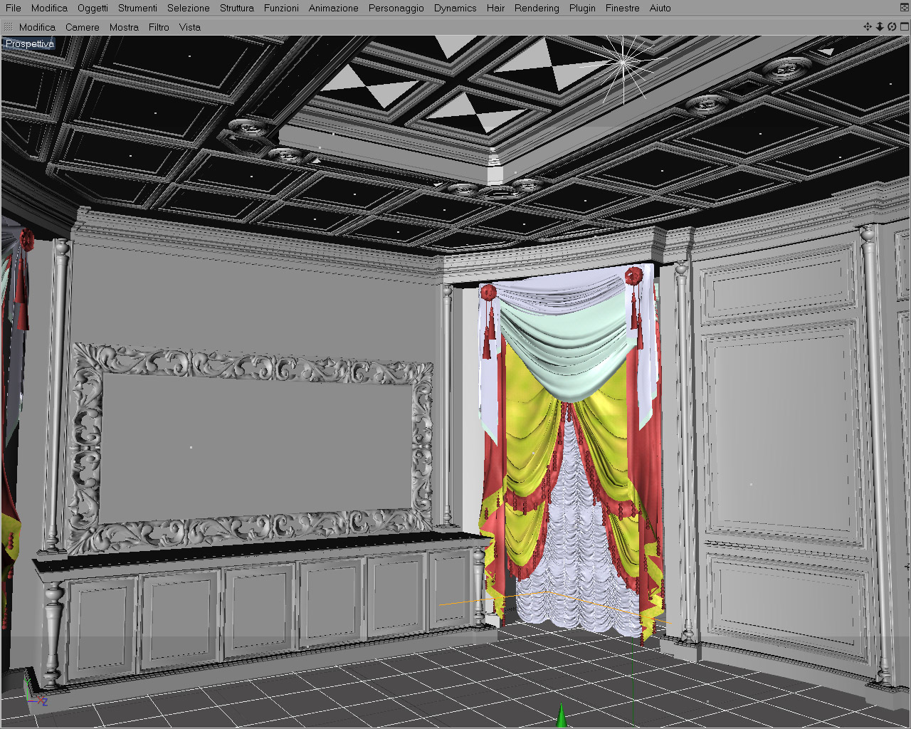 successivamente farò la stessa cosa x le boiserie a parete. questo, oltre a evitarmi la modellazione su parete curva (che attualmente ho fatto solo in parte) mi portera ad un ulteriore alleggerimento della scena.