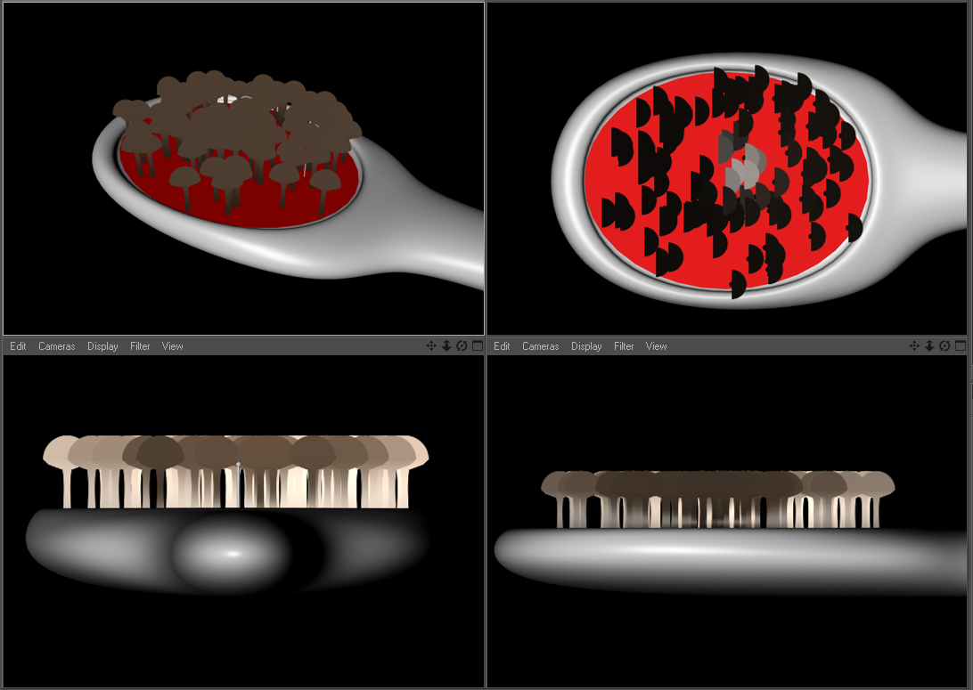 Quindi ho seguito i tuoi buoni consigli ed ho provato ad applicare Mograph, ( ed ancora una volta senza aver letto il tuo post....!) et voilà... Il risultato è quasi decente, ma il tuo è mooolto meglio. Solo una domanda: usando il cerchio ho una disposizione concentrica dei chiodini, e solo con un piano, che ho adattato allo spazio in cui i chiodini devono giacere, riesco ad avere un risultato migliore -anche se dovrei ancora spostare punti, studiarci sopra, etc etc- insomma come mai i tuoi chiodini non sembrano disposti concentricamente? Se è una cosa alla quale provando e riprovando arrivo da solo, bene, non vollio saper nulla, ma visto così...