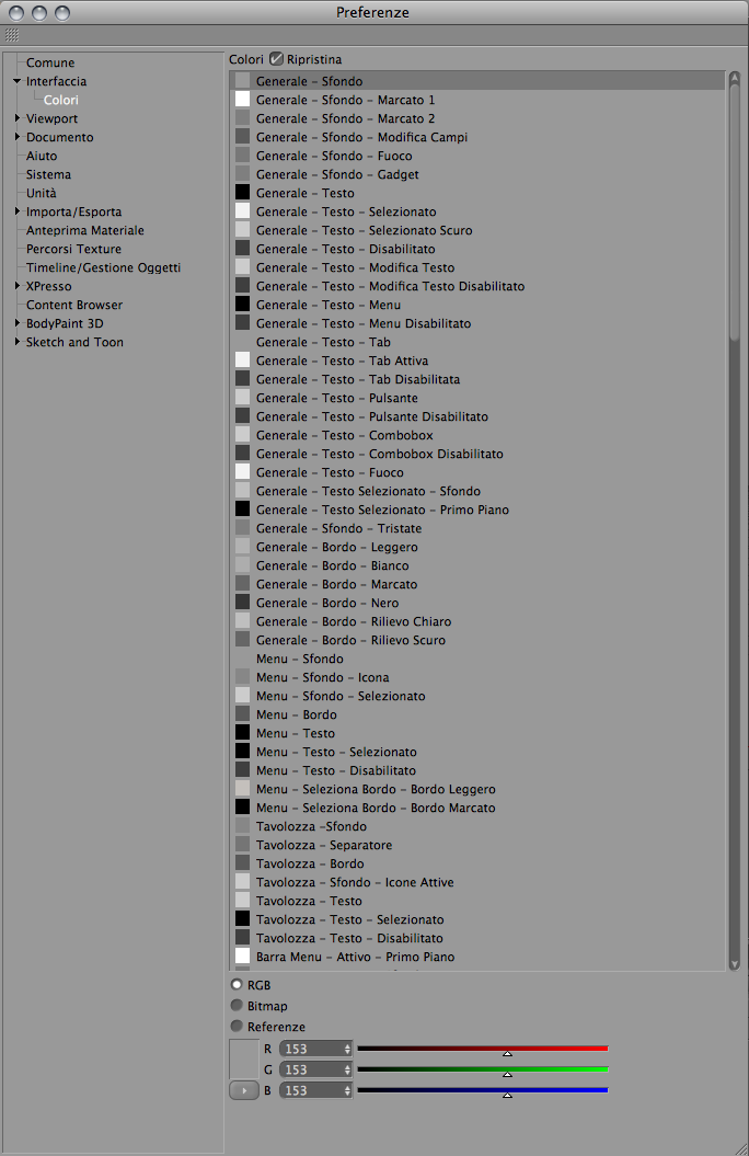 nemmeno io ho ben capito cosa vuoi fare, ma se devi modificare l'interfaccia di Cinema4D e i relativi colori, vai sotto il menù "Modifica"-->"Prefernze"-->"Interfaccia"-->"Colori".