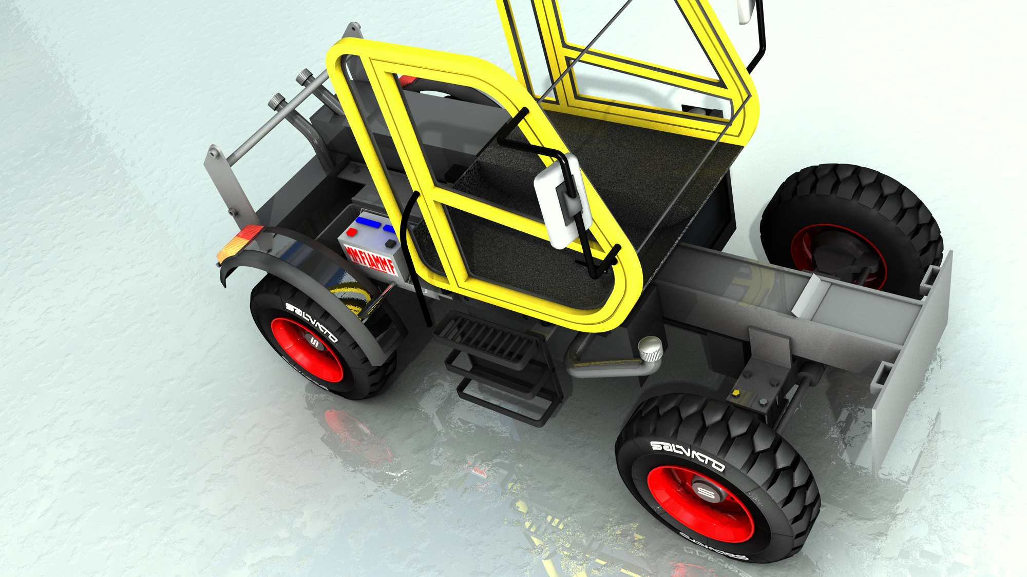 io utilizzando autocad da anni ( la prima versione che ho avuto era sotto dos) :D, mi trovo abbastanza bene a d utilizzarlo sia in 2d che 3d. certamente ha dei limiti, ma è molto preciso e per certe cose va proprio bene. fortunatamente il trattorino aveva delle forme che non implicavano grandi problematiche. se ci fosse stato per esempio un vetro della cabina concavo sarebbero stati guai... poi l'ho importato in cinema e il risultato è questo :D