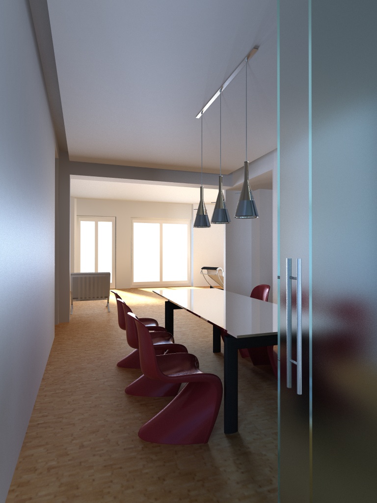 Qualcuno sa spiegarmi come mai il vetro del tavolo in primo piano riflette l'infisso in fondo alla scena come se questo si trovasse invece davanti il tavolo???
