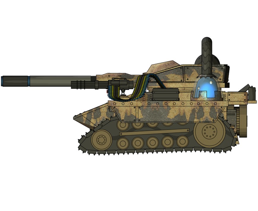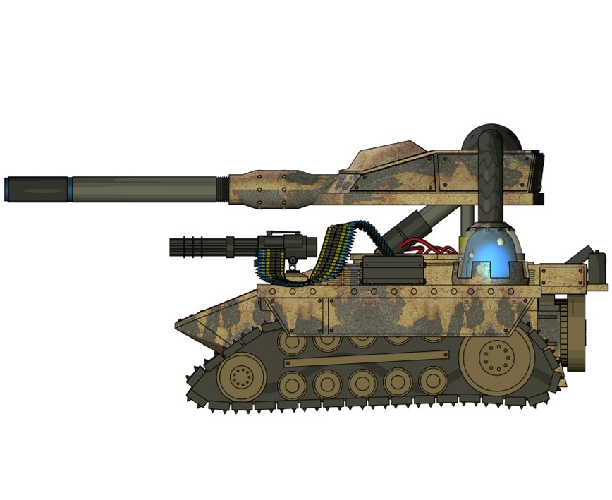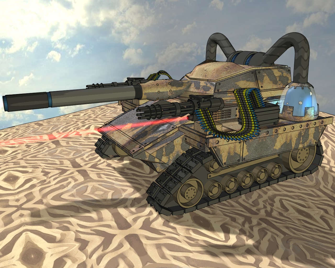 Armamento primario cannone 120mm Oto Melara ad anima liscia con raggio congelante ad azoto liquido potenziato