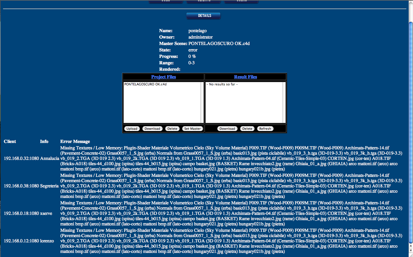 Una volta caricato il file .c4d nella sezione "upload"...faccio "start" per far partire il lavoro ...ma dopo pochi sec. appare questo messaggio di errore che vedete allegato....