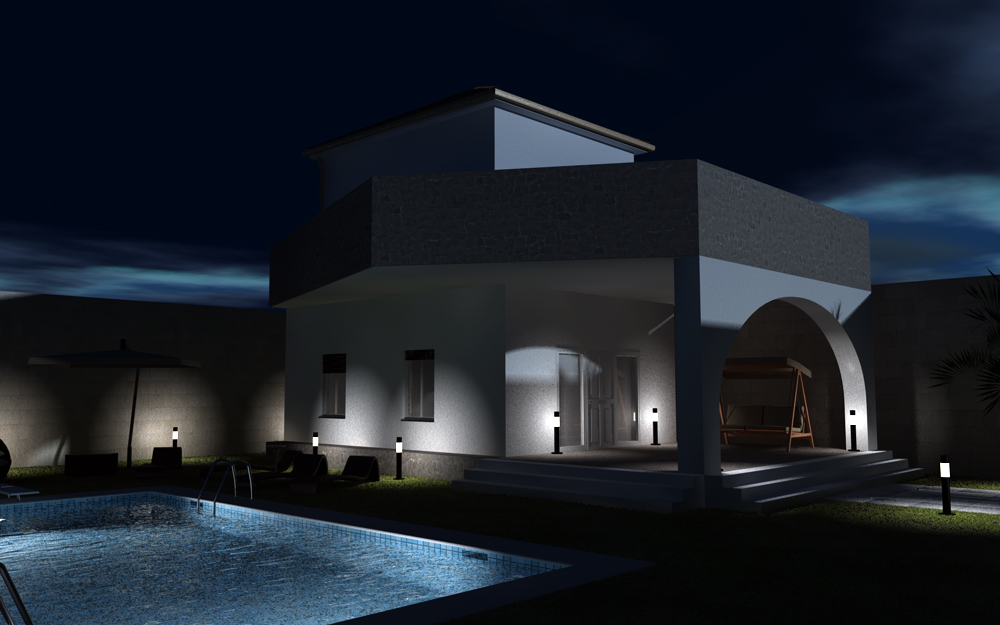 Nel complesso è un buon lavoro,anche se con hair migliorerebbe notevolmente,ma come già sai il processo di renderizzazione si allungherebbe notevolmente.A me è piaciuto in particolare il materiale acqua usato nella piscina.