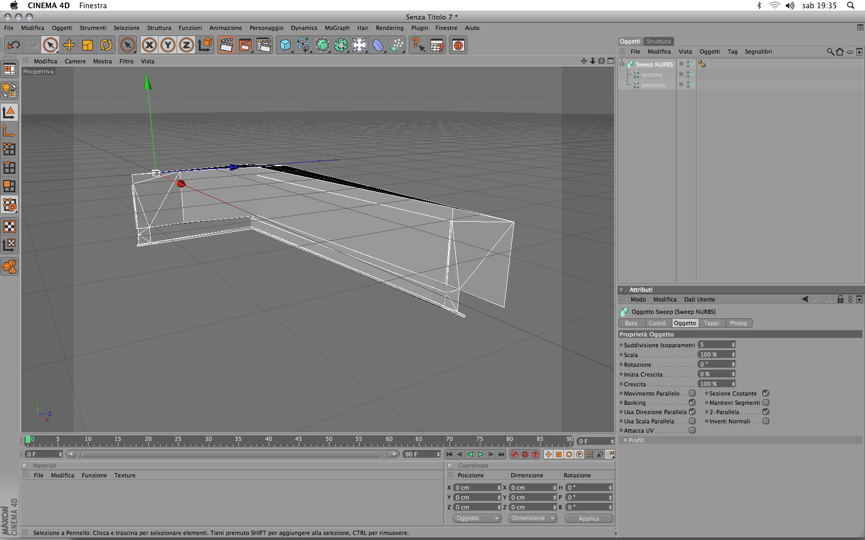 Ho pensato che il miglior modo sarebbe stato quello di inserire la sezione, con il suo percorso, in una sweep nurbs...ma quando lo faccio diventa tutto un pastrugno brutto, cosa che invece non mi fa se per esempio al posto della mia sezione inserisco un oggetto profilo che c'è nel menù delle spline di cinema...