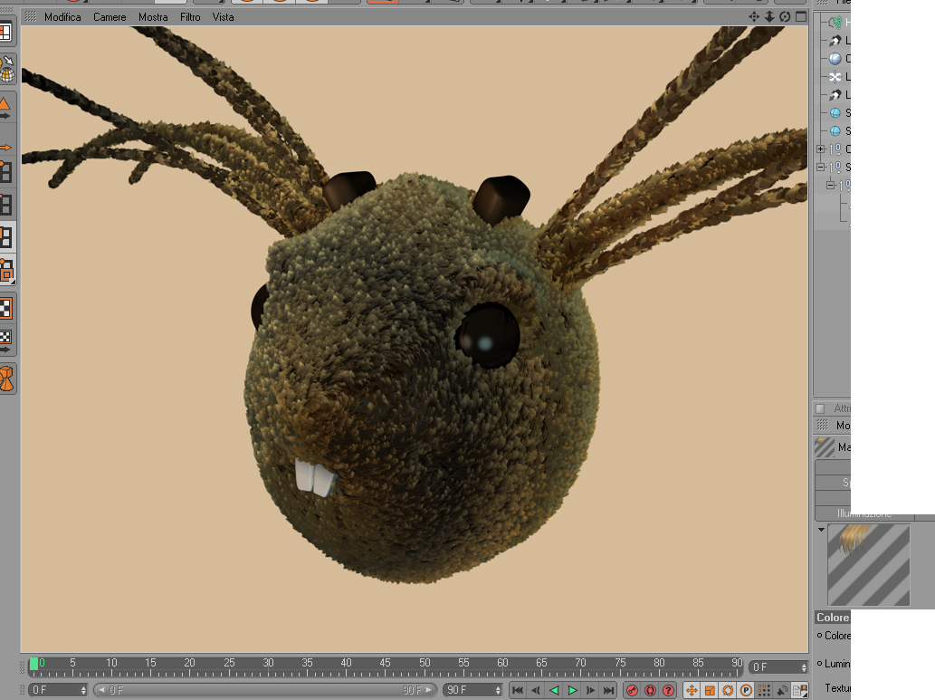 Vabbè, l'ultima cosa è questa: alcune questioni le ho date per scontate, come la possibilità di variere la suddivisione di guide o capelli in corso d'opera, di norma tengo bassi i valori di entrambi fintanto che cerco la piega giusta, poi aumento un po' la suddivisione delle guide, per avere ancora più dettaglio nel lavoro di messa in piega e, infine, aumento le suddivisioni dei capelli per il render.