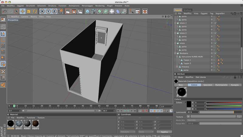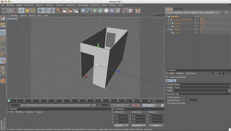 Cubo puo' essere anche un oggetto RAGGRUPPATOm NULLO (lo trovi nello stesso menu della booleana) con dentro piu cubi per il resto dei buchi, li metti intorno alle pareti e fai una booleana unica...