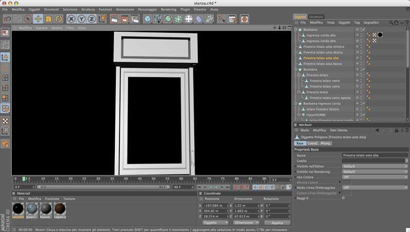 E' la prima volta che mi occupo di architettura in cinema quindi spero mi scusiate nel caso dovessi fare domande per voi troppo ovvie. Nell'immagine sotto ho realizzato i muri interni e adesso dovrei proseguire con la finestra, ma non so proprio come crearla ed inserirla in modo verosimile nella parete. Potreste delucidarmi?? Posto anche l'immagine di come dovrebbe essere la finestra.