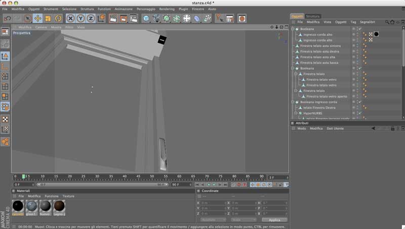 per la finestra, mi sembra che tu sia già a buon punto, l'imposta dovresti riuscire a modellarla come hai fatto il resto...in cosa hai problemi? per la corda della tapparella, invece, potresti crearti una spline da dove parte a dove finisce, e riempirla con un quadrato in una sweep nurbs (nell editor oggetti devi mettere Sweep nurbs-percorso-sezione(un quadrato di cui sceglierai le dimensioni della corda)