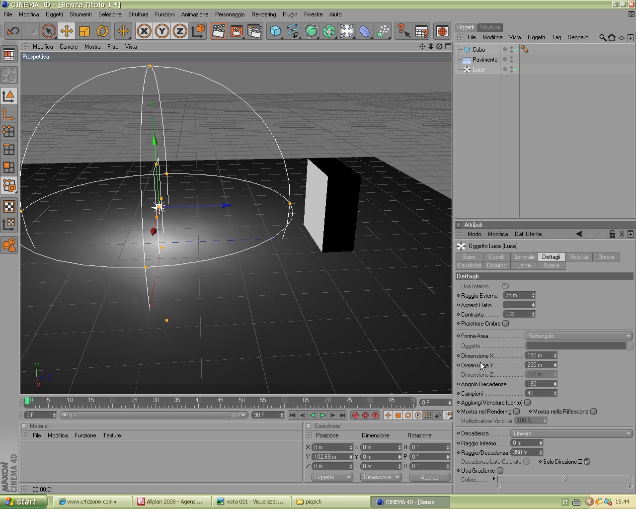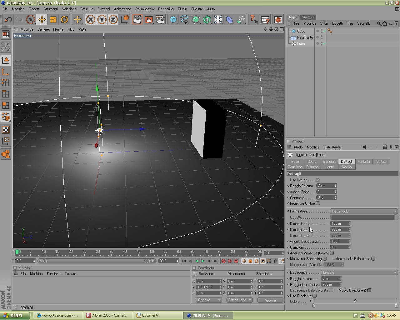 nei due esempi 350 non illumina il cubo mentre allungandola a 700 la luce arriva ad illuminare il cubetto