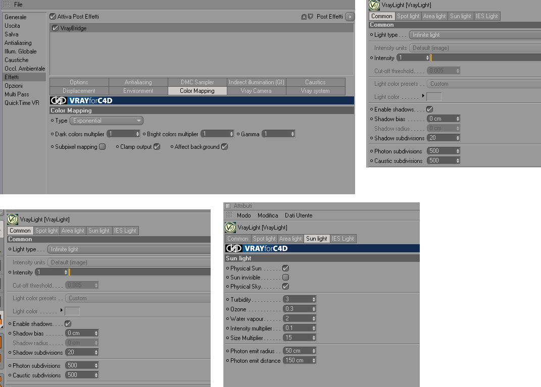 parametri di illuminazione, colormapping e camera.
